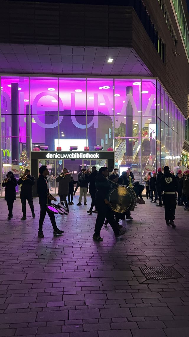 De wandeltocht begon in Almere Haven, waar De Nieuwe Bibliotheek vijftig jaar geleden haar oorsprong vond, en eindigde in het hart van de stad. Bij aankomst in Stad werden de deelnemers feestelijk onthaald door de GDFL Brassband, die met hun muziek zorgde voor een warm en energiek welkom.