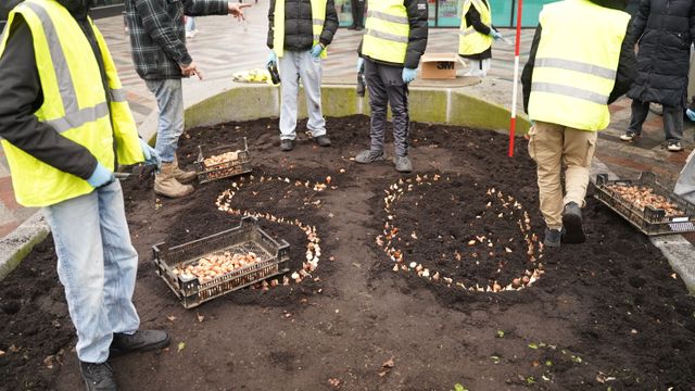 Scholieren plaatsen op 17 december 2025 honderden tulpen in Almere Centrum ter ere van de 50-jarige verjaardag van de stad. De bollen zijn overgebleven na het aanplanten voor de Tulpenroute Flevoland, en door twee kwekers aan de stad geschonken. De aftrap van de Tulpenroute Flevoland is op 4 april, in het centrum van Almere. De kwekers vinden het leuk als er tegen die tijd ook bloeiende tulpen in het centrum staan. Dus boden ze de bollen aan aan Loes Jongen, projectmanager en Centrummanager in Almere Centrum.