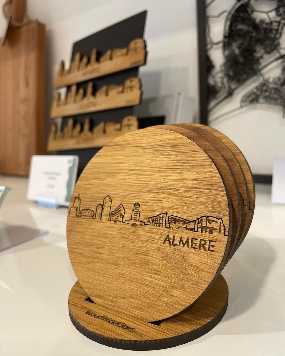 Breng een stukje Almere in je interieur met deze prachtige houten onderzetter! Gegraveerd met de skyline van Almere, een blik op de stad bij elke slok! Een super leuk kadootje voor jezelf of om aan iemand anders te geven:)