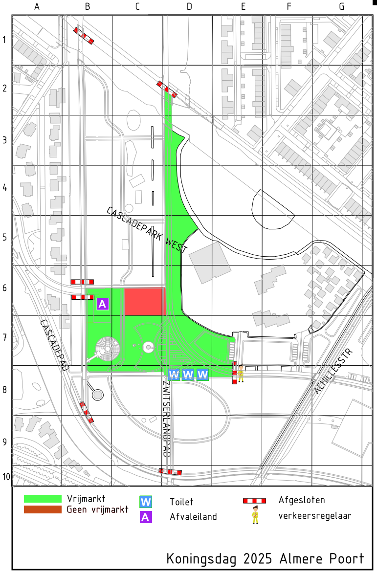 Cascadepark (Almere Poort) - van 25 april 17.00 uur tot 26 april 17.00 uur - Zie plattegrond