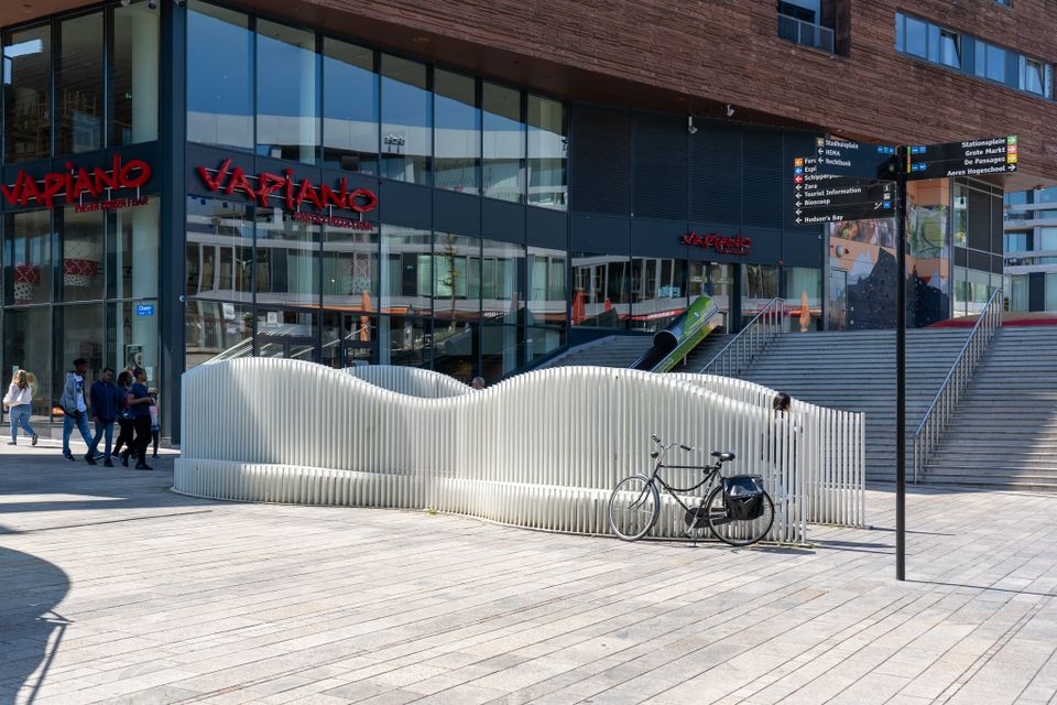 Trappen in steden overal ter wereld - zoals de Spaanse trappen in Rome - zijn niet alleen doorgangsroutes, maar ook ontmoetingsplekken. De trappen in het centrum verbinden de boven-en onderwereld van het gebogen maaiveld met elkaar. Alle drie zijn uniek vormgegeven en geven unieke ervaringen wanneer je ze beloopt, bij alle komt de sociale functie goed tot uitdrukking. De multifunctionele trap is tegelijkertijd trapleuning en bank.