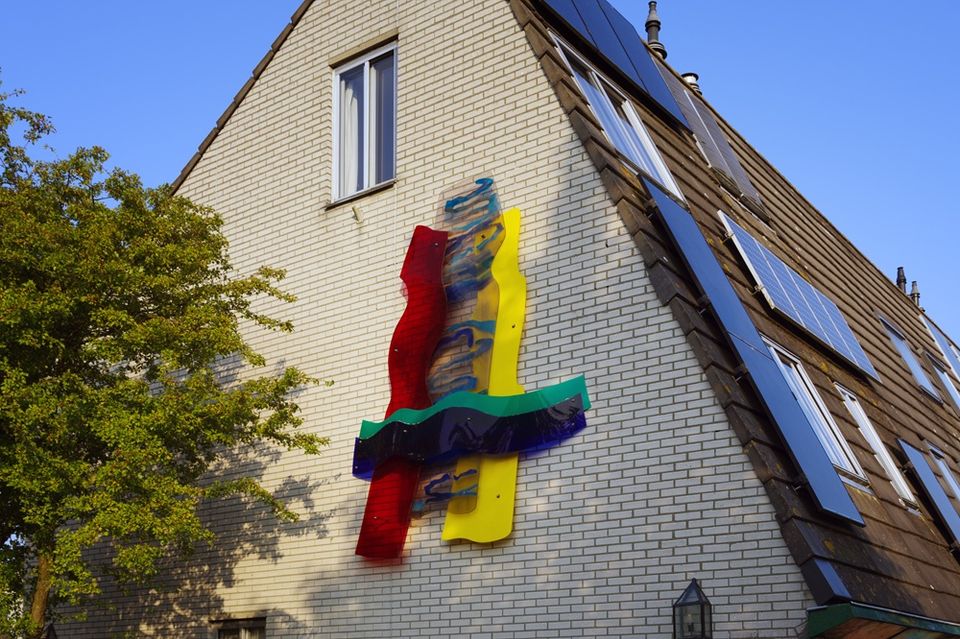 De bewoners van de Hofmark wilden een kunstwerk om de ingang van de ecologische wijk aan te geven. Het kunstwerk laat de stad zien, het droogleggen van de polder, de koolzaadvelden en het groen/blauwe raamwerk.
