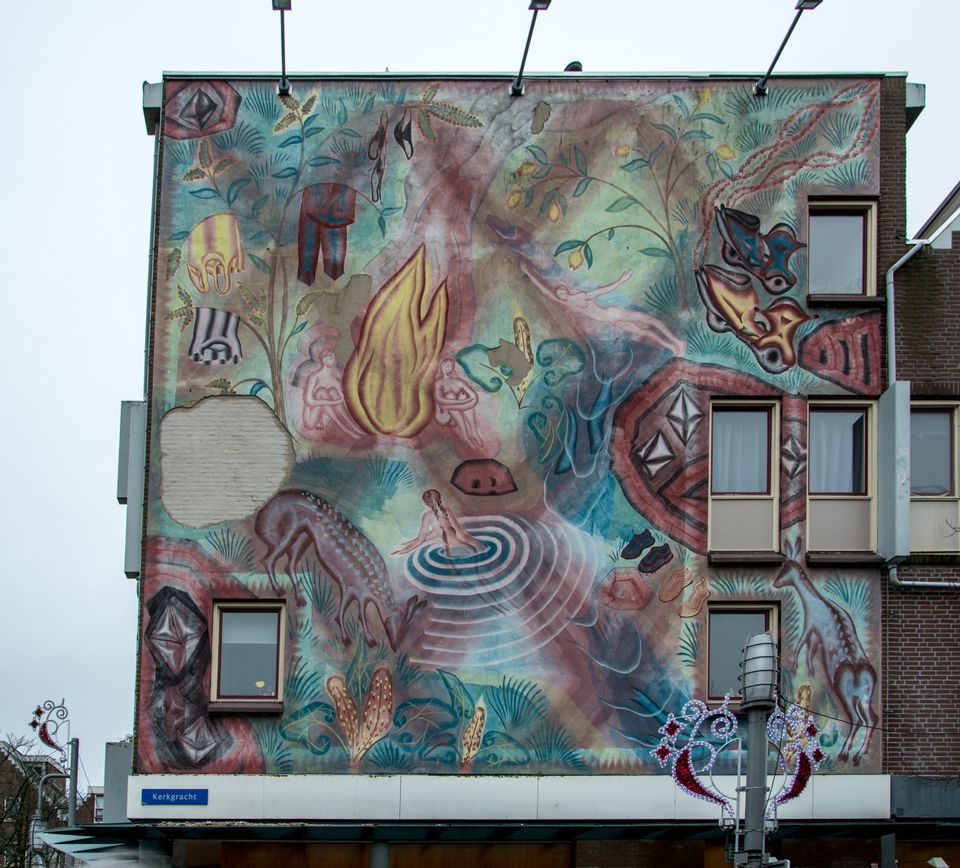 Frieling kent Almere goed, hij heeft op scholengemeenschap De Meergronden gezeten. ‘Ik wilde een sprookjesachtig beeldverhaal maken. De idylle dat mensen en dieren samen leven. Als je de schildering ziet, beland je in een droomwereld.’