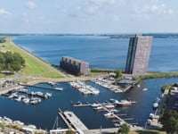 Sta stil op de Gooimeerdijk en kijk uit over het Gooimeer naar het oude land. Hier voel je de verbinding tussen het verleden en de toekomst, tussen het vertrouwde en het nieuwe. Een uitzicht dat de essentie van Almere weerspiegelt.